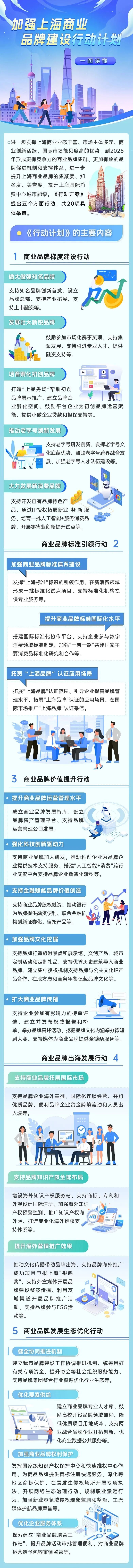 加强商业品牌建设是更好满足消费升级需求、提振和扩大消费的重要任务。为进一步发挥上海商业业态丰富、市场主体多元、商业创新活跃、国际市场能见度高的优势,到2028年形成更有竞争力的商业品牌集群,更加有效的商业品牌促进机制和支撑体系,近日,市商务委、市委宣传部、市委金融办、市发展改革委、市经济信息化委、市市场监管局、市知识产权局等7部门联合印发《加强上海商业品牌建设行动计划》,提出五个方面行动,共20项具体举措,详见↓