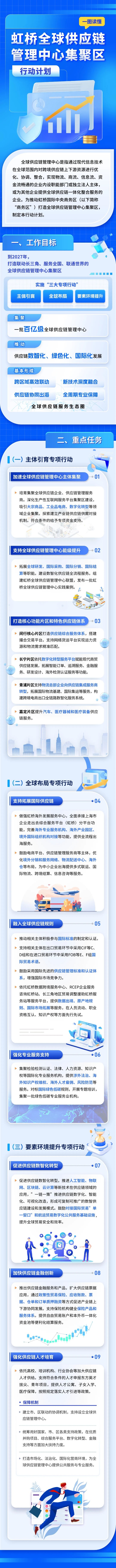 虹桥国际中央商务区建设全球供应链管理中心集聚区,有基础,有优势。为更好支持企业强化全球供应链管理功能,推动产业链供应链合理有序跨境布局,提升贸易商全球供应链布局能力,对标高标准国际经贸规则,经广泛调研和听取企业意见,商务区研究制定了《行动计划》。